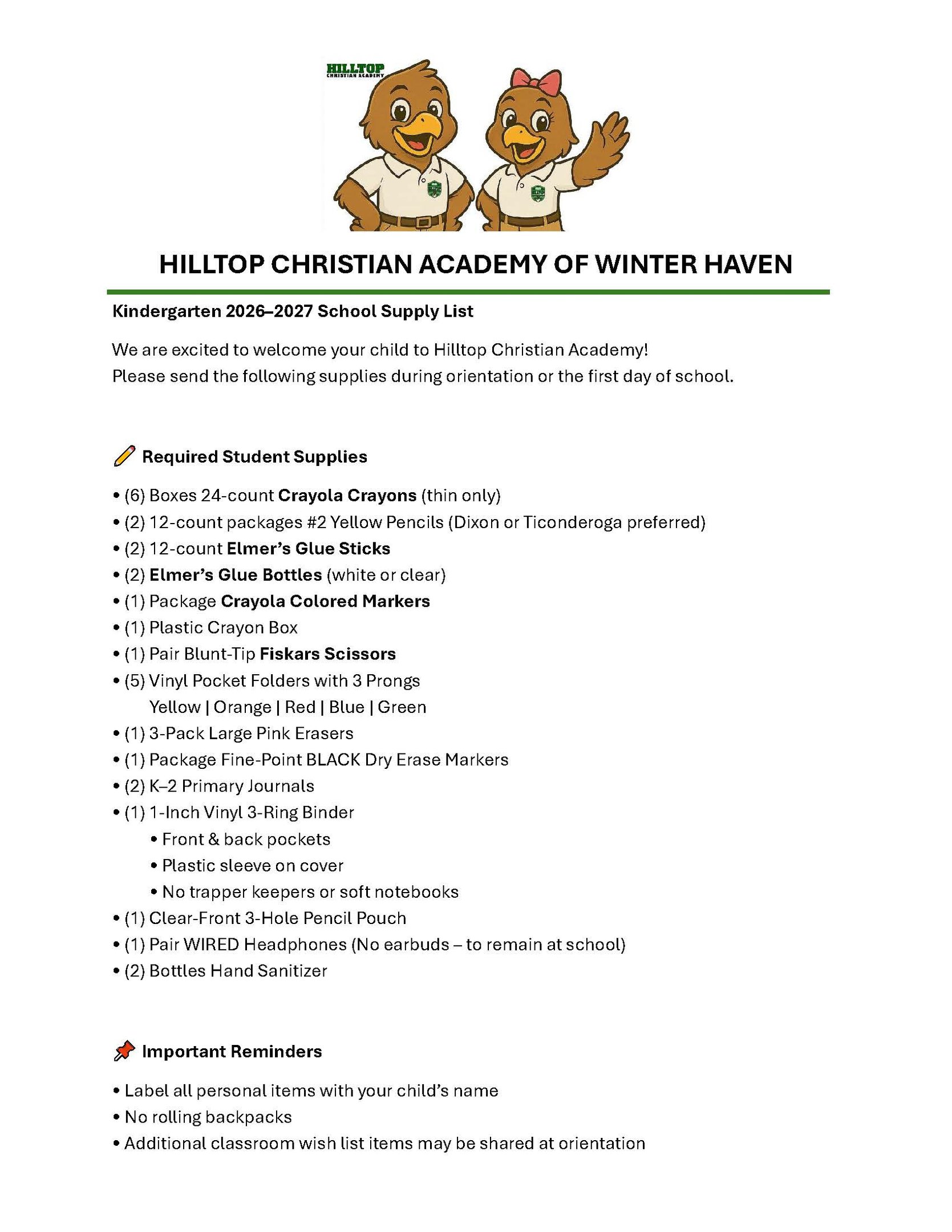 In addition, our elective classes will include Daily Library, Chapel, Music & Art, Daily Health & Wellness, Daily Recess, and Bible Time.